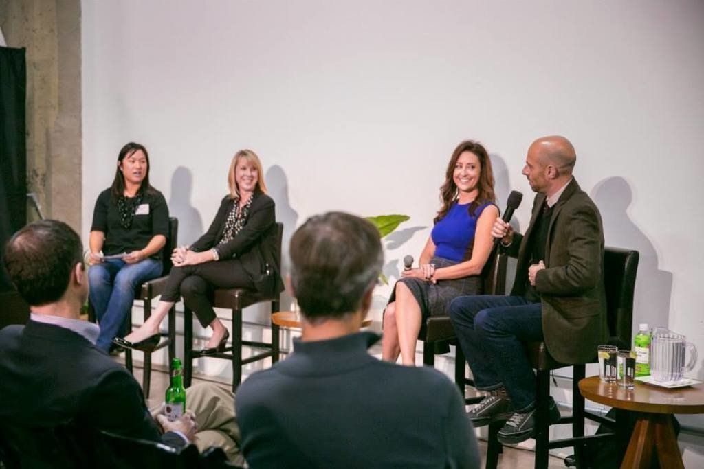 Panel with leaders from various functions at top tech companies discussing best practices in cross-group teamwork and collaboration.